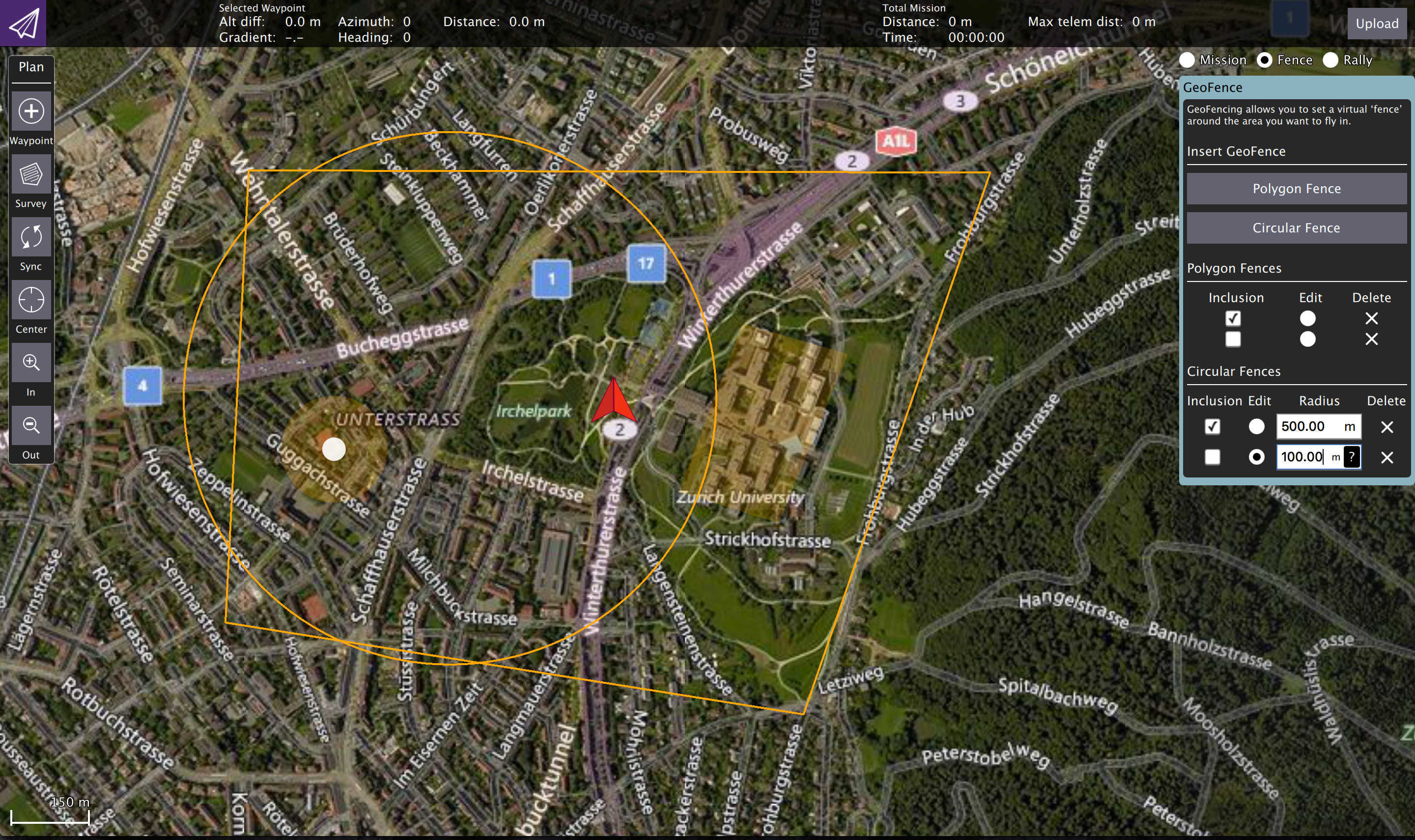 The new Plan Toolbar is displayed at the top of the PlanView. It shows you information related to the currently selected waypoint as well as statistics for the entire mission.