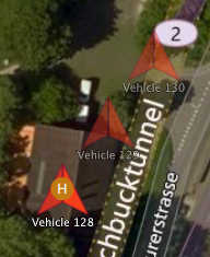 - Displays vehicles reported from ADS-B sensor.